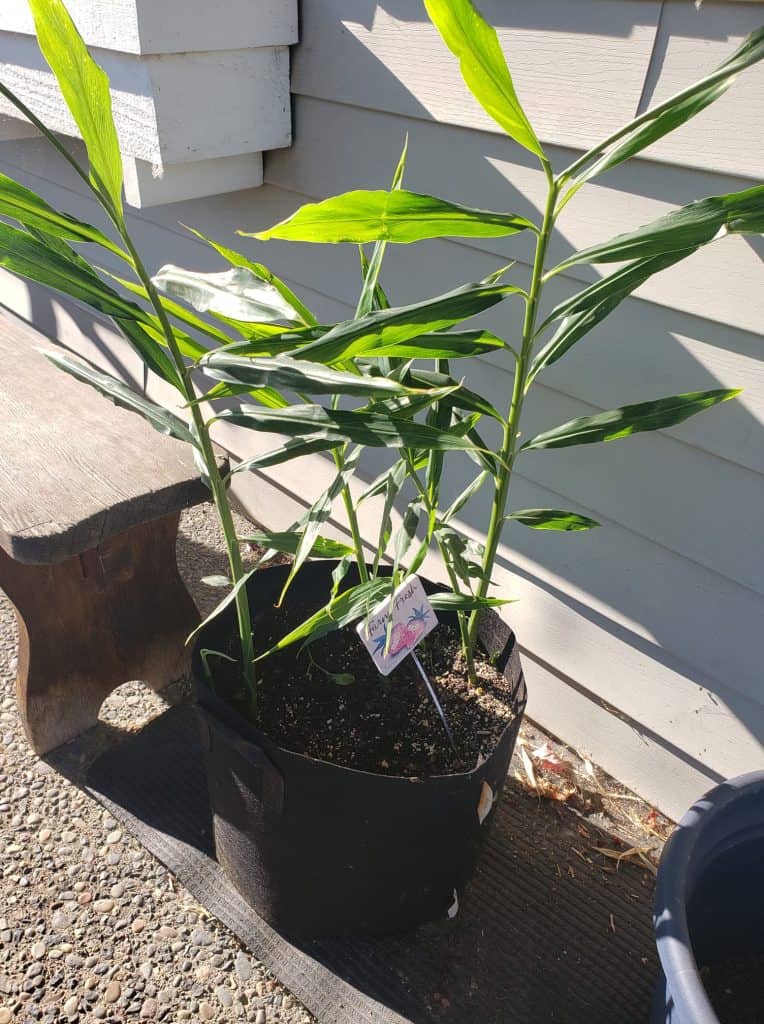 Ginger’s leafy stalks are pretty sturdy, but once the plant starts getting tall – especially in a breezy area – the tops might lean or flop a bit.
