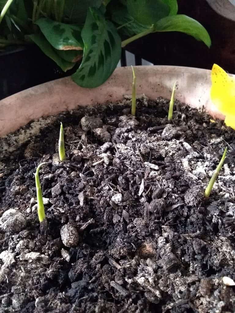 Now wait – usually about 2 to 4 weeks. You’ll start to see green shoots poking up, and possibly some root development underneath.