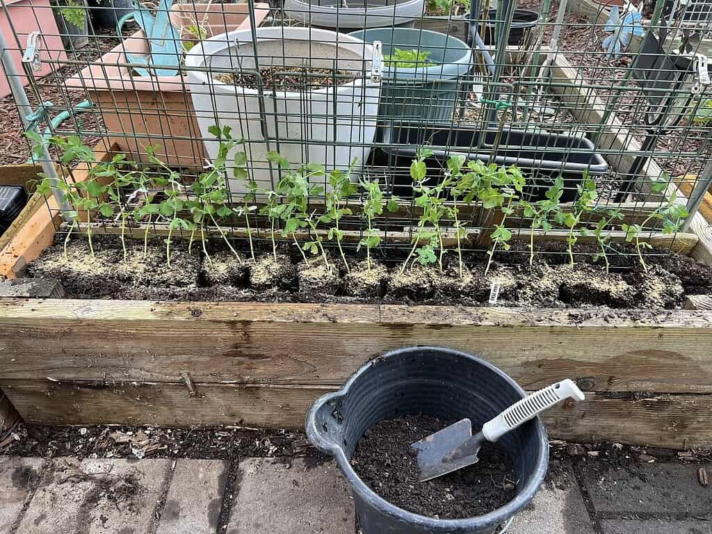 Peas don’t like competition from weeds (especially when young). Before planting, it’s good to remove any big weeds in the bed.